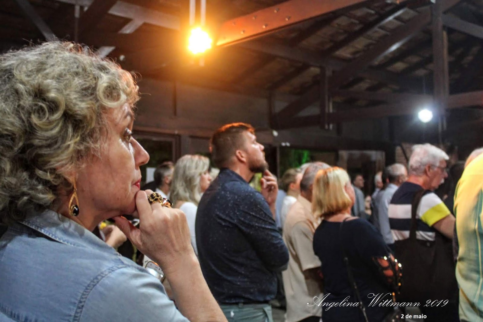 O início da programação da noite começou pontualmente às 19:00h. Houve a fala do Presidente do Conselho Estadual de Cultura, que também é um dos autores - Marcondes Marchetti. Na sequência, aconteceu a fala de um dos representantes dos autores,Gilberto Schmidt Gerlach. Gilberto mencionou que estudou 4 anos no Colégio Santo Antônio de Blumenau e foi quando conheceu Marchetti. Em seguida, fez uso da palavra, o Presidente do Instituto Histórico de Blumenau - IHB - entidade fundamental para o êxito do projeto, através do empenho pessoal de Marcos Schroeder - seu presidente, entre outras manifestações formais e oficiais. Ver o vídeo abaixo.