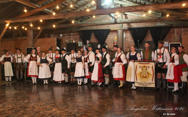A responsável pela confecção do novo traje apresentado na noite festiva - Kaschuben Trach (sobre o qual já escrevemos neste blog - listado no final) Maria Odete Turinelli - proprietária da München Trajes Típicos. Também foi feito agradecimento especial aos ex integrantes de forma direta a ex folclorista Marlise Milchert que acompanhou a Schwester Anita na fundação do grupo folclórico e também nas festas e brindes. Contou as histórias quando fez uso do microfone, e também recebeu flores do atual folclorista do Pomerano Luciano Porath, que tem a essência das flores em suas mãos, por trabalhar com elas, quando não dança folclore.