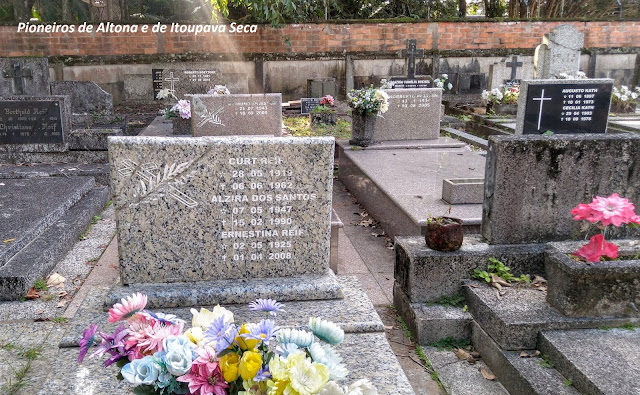 Para resumir, o cemitério, do qual apresentamos uma amostra, através de alguns registros das inscrições históricas - Cemitério Luterano de Itoupava Norte, tem ligação histórica com a antiga Comunidade Altona e também, seus personagens históricos. Frequentavam a mesma comunidade luterana e as atividades em comum. Esta Comunidade Luterana de Itoupava Seca, também possui parte do cemitério municipal localizado na Rua Bahia, onde também á fizemos registros.