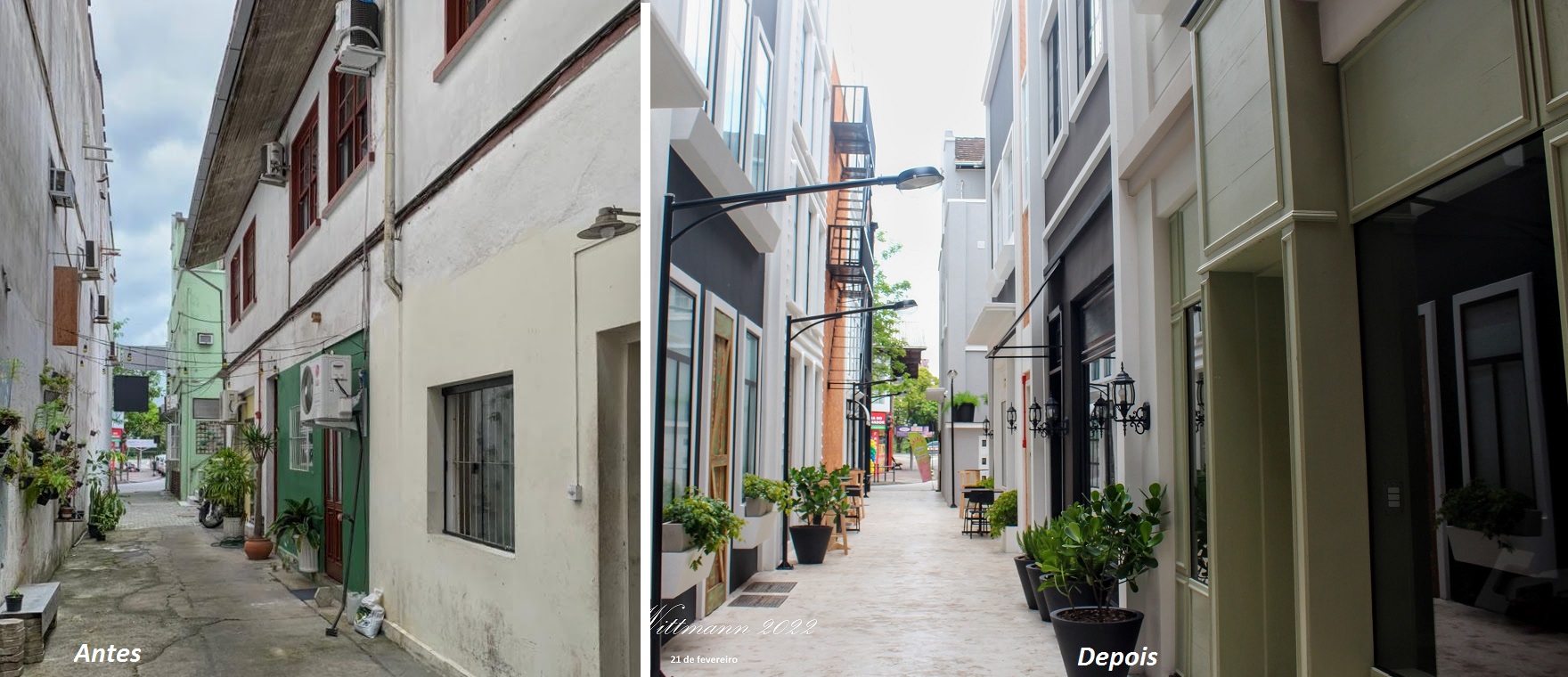 Um exemplo para ilustrar esta questão, em Blumenau e o impacto positivo que causa nas pessoas foi uma intervenção feita em um beco existente junto a Rua XV de Novembro, Blumenau.