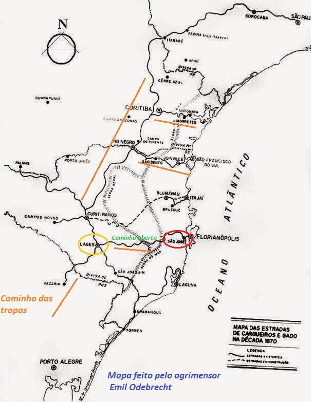 | Pousada de tropas, no caminho para Lages. Fotografia de Dr. Phil Wetstein - publicada em seu livro - início do século XX. Engenheiro da Cia Hanseática. |