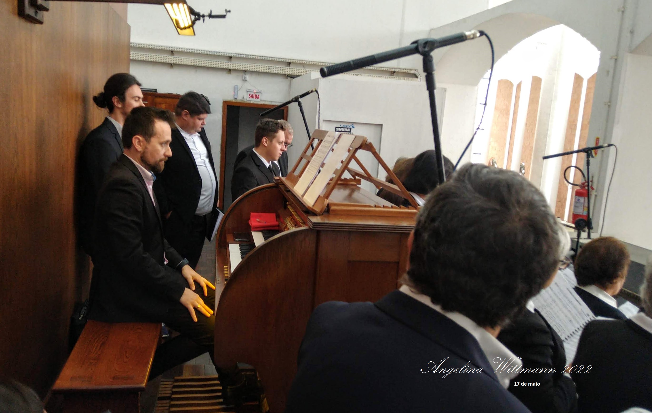 Na missa dominical do dia 17 de julho de 2022, registramos, mais uma vez os acordes do centenário órgão alemão, Faber & Greve,da Catedral São Paulo Apóstolo de Blumenau acompanhando as vozes do Coro Santa Cecília regido por aquele que coordenou a restauração do histórico órgão, maestro Paulo Eduardo Visconti - que como ocorre na Alemanha e Europa, têm outra profissão, que não está relacionada com a música. Paulo é engenheiro civil. Este, o órgão, nesta manhã, foi tocado por João Ullrich, que vem despontando na cidade de Blumenau, como organista. Presente neste dia, o professor de Joinville, Cleonir Zimmerman, professor de João Ullrich, que por sua vez, é professor em Blumenau. Esta efervescência que vem ocorrendo - ressurgimento do canto coral e do órgão e harmônio e a arquitetura, somente engrandece o Vale do Itajaí, Blumenau, disponibilizando mais uma opção cultural trazida pelos pioneiros que semearam cidades nesta região, de grande beleza. Há momentos que temos a sensação de que há pessoas que tentam desmontar esta realidade cultural, acreditando que este segmento não faça parte do Brasil multicultural.