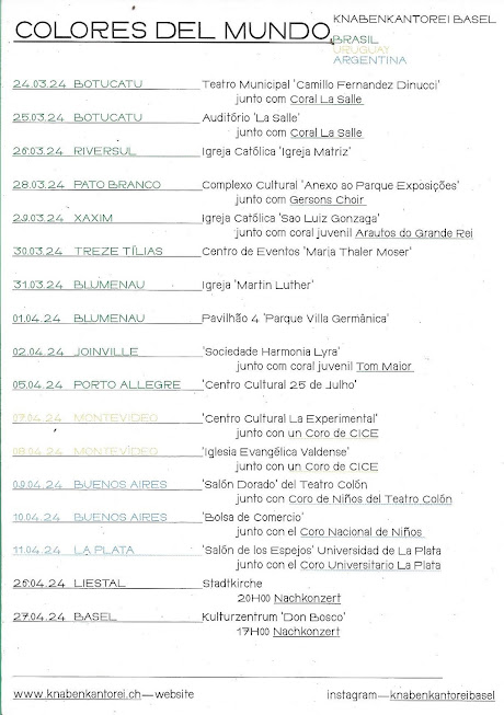 Turnê Colores del Mundo - Coro Knabenkantorei Basel (KKB) 2024.