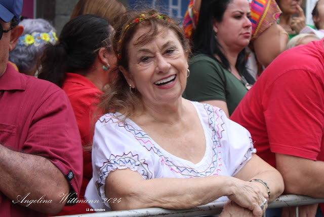 | Marilí Martendal parte da imprensa que cobre o desfile oficial oficial da Oktoberfest Blumenau 2024 |