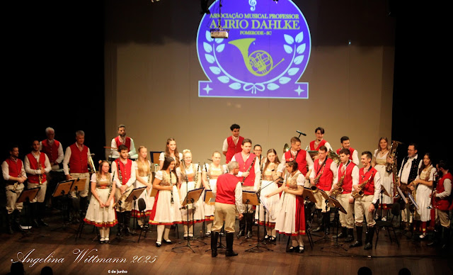 | Momento da apresentação na nova logomarca da Associação Musical Professor Alírio Dahlke. |